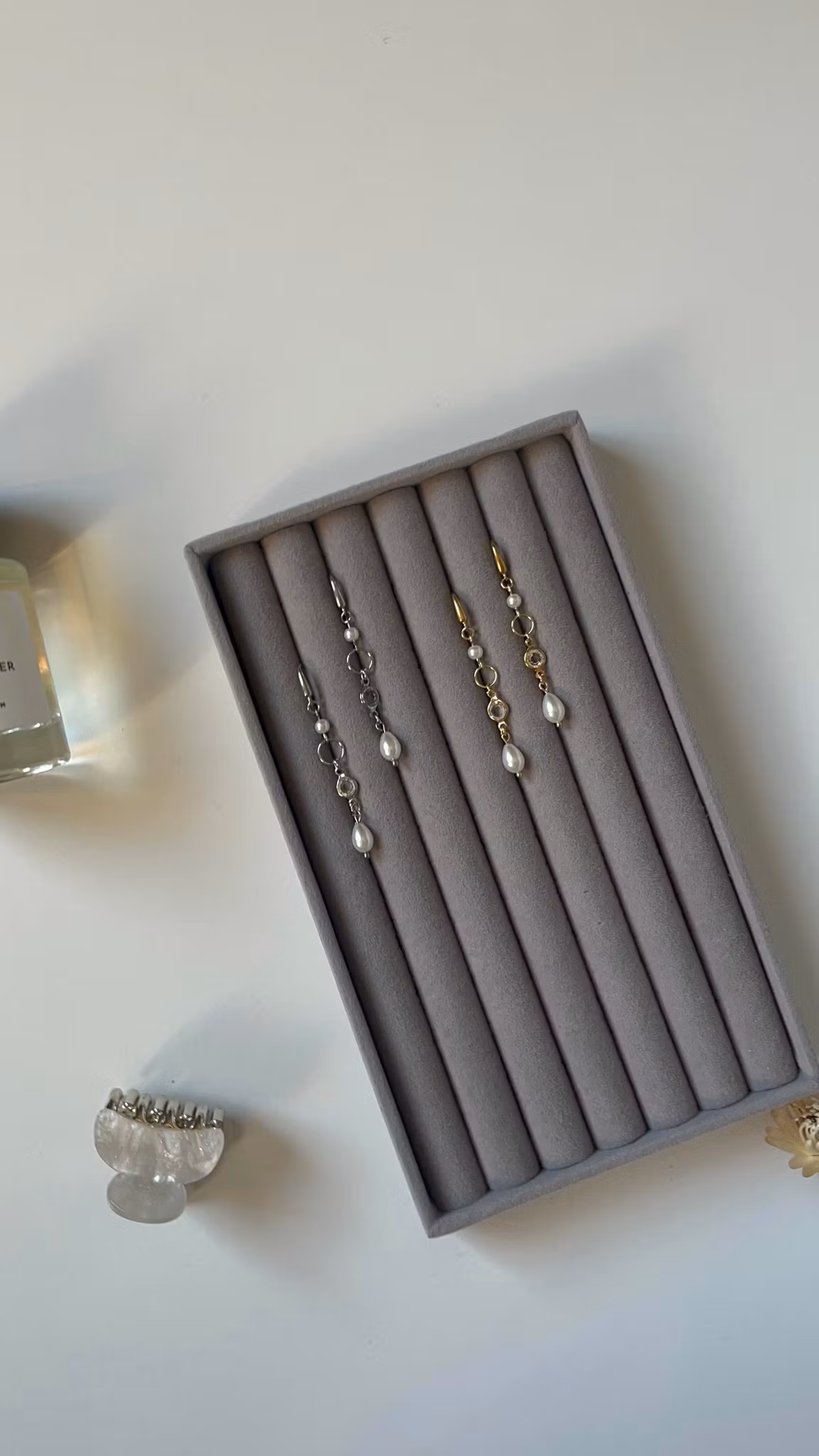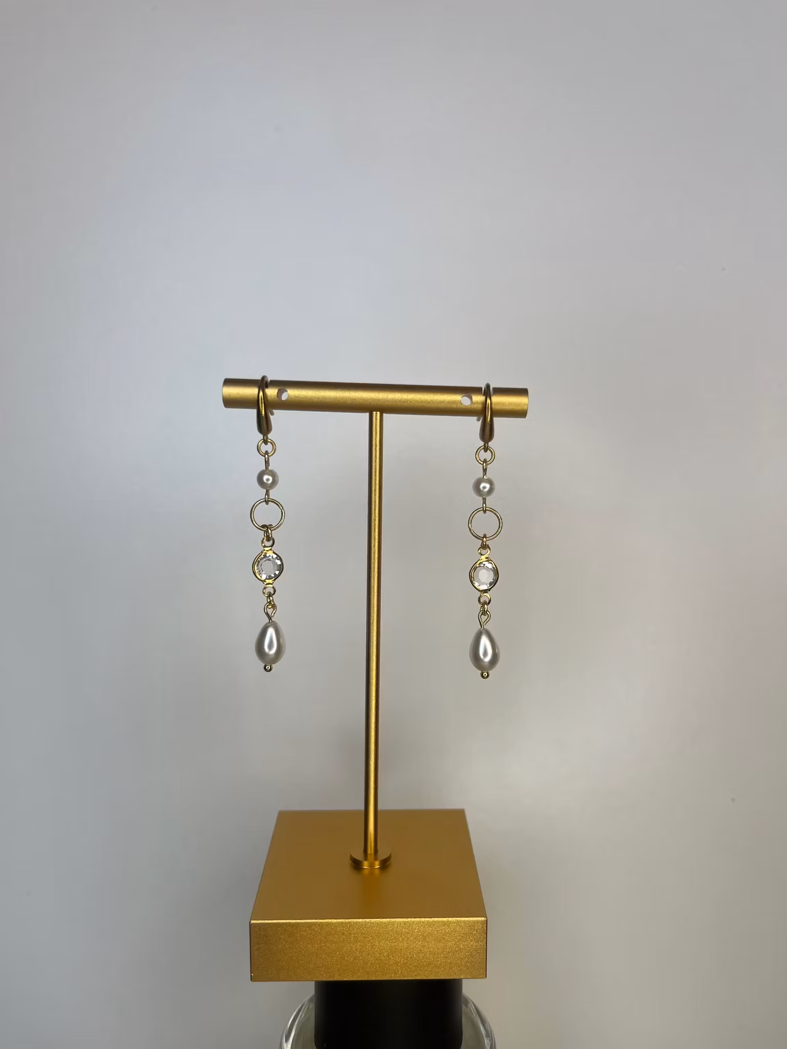 Charlotte Earrings Guld 89 kr Lägg i varukorgen Produktbeskrivning Priset gäller för ett par. Material: guldigt/ guldpläterat rostfritt stål, vaxade pärlor, glasstenar